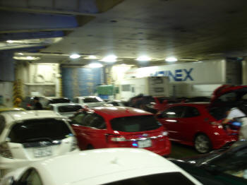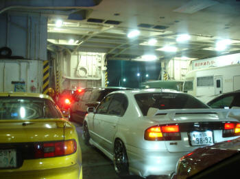 到着してすぐ下船するには、それまでに格納庫に降りて車に乗っておかなければならない。